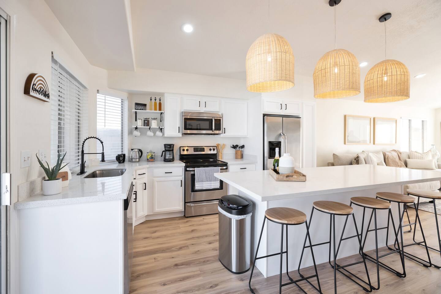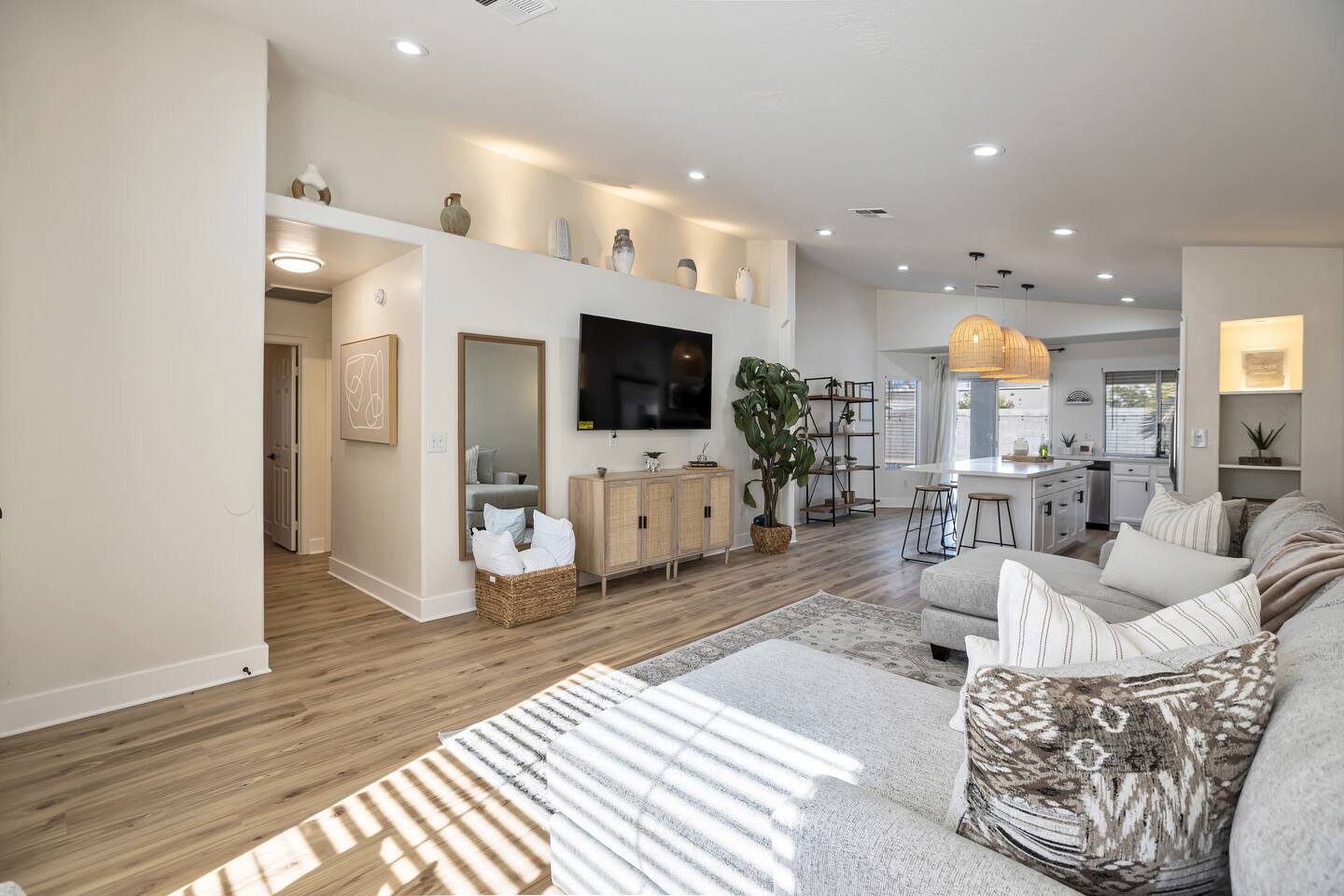 Enjoy mornings by the pool, movie nights in the living room, or meals in the open dining area. Whether you’re here for a weekend escape or an extended stay, Casa Camila offers the warmth of home with the amenities of a boutique retreat. Make yourself at home… this is your space to relax, recharge, and enjoy Arizona at its best. The property offers one king, two queen beds, and a sofa that will comfortably sleep two guests. Driveway parking designed for two cars and free street parking.